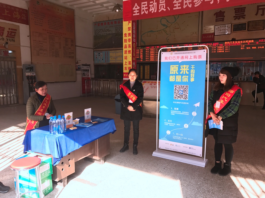 第一輪推廣單位為:邵陽汽車東站、邵陽汽車南站、邵陽汽車北站、隆回汽車東站、隆回汽車西站。12月下旬邵陽湘運(yùn)旗下所有車站全部進(jìn)行推廣。以下為8日推廣活動圖片。